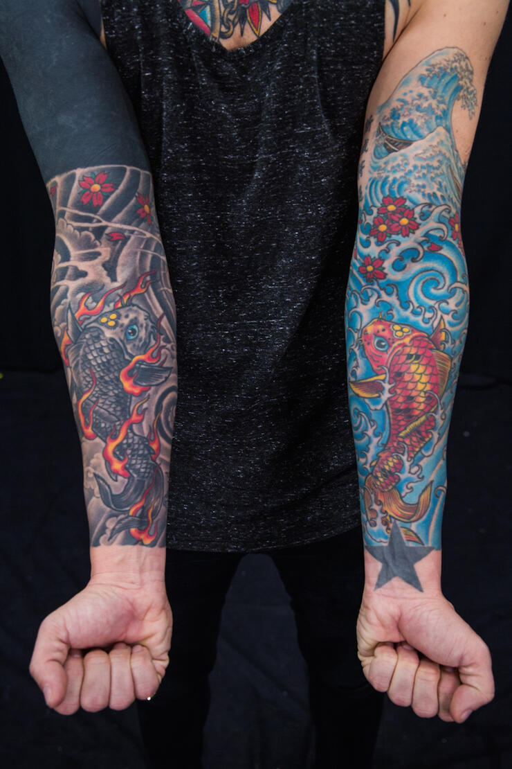 Cover Up Tattoos On Forearm Koi Fish Arm Tattoo Cover Up
